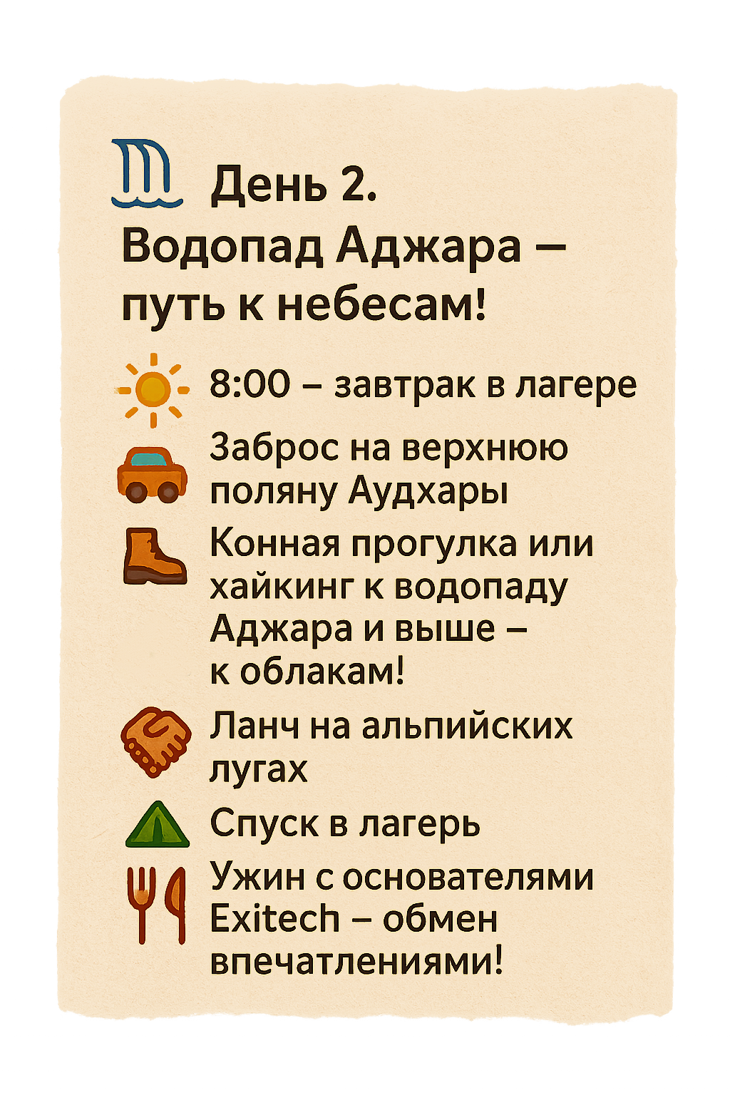 С 1 по 15 августа экспедиционный лагерь Exitech Travel бросает якорь в самом живописном месте горной Абхазии — долине Ауадхара!